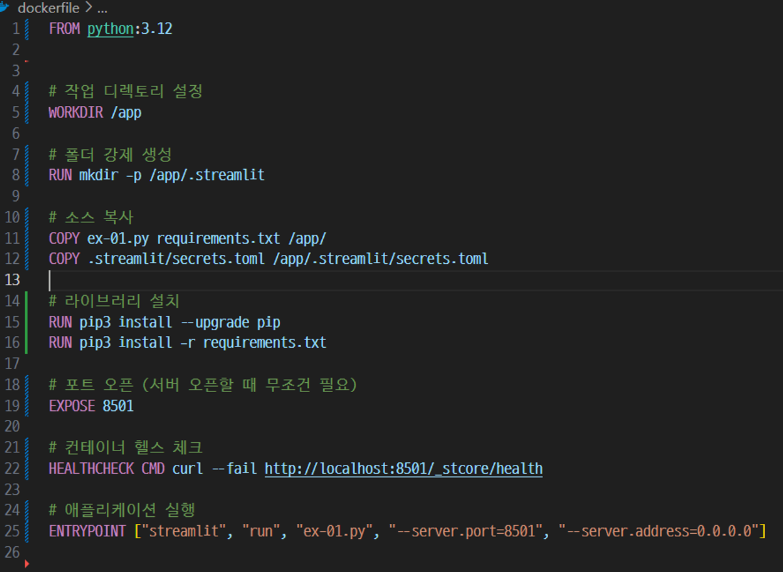 - docker file에서 ubuntu로 streamlit을 실행하려서 하지 말고 python을 이용해서 streamlit을 실행시켜야 한다. → ubuntu로 되는 줄 알았음…