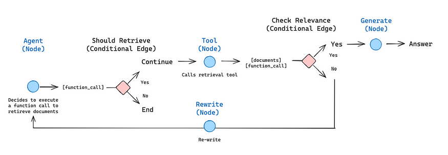 - Node: 개별 작업 단위를 나타내며, Python 함수로 구현됩니다. 현재 상태를 입력으로 받아 처리하고 업데이트된 상태를 반환합니다.